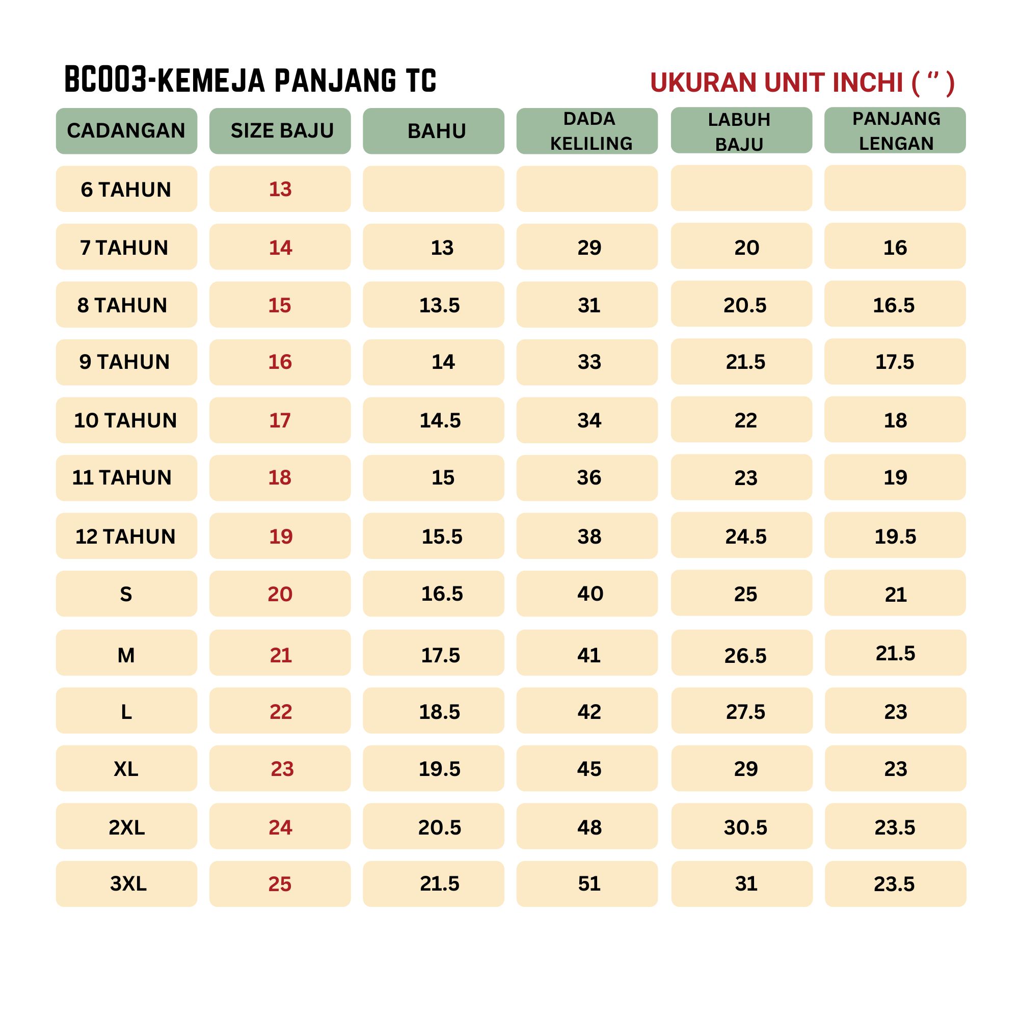 Kain Kurung Menengah (Koshibo) Jenama Falcon