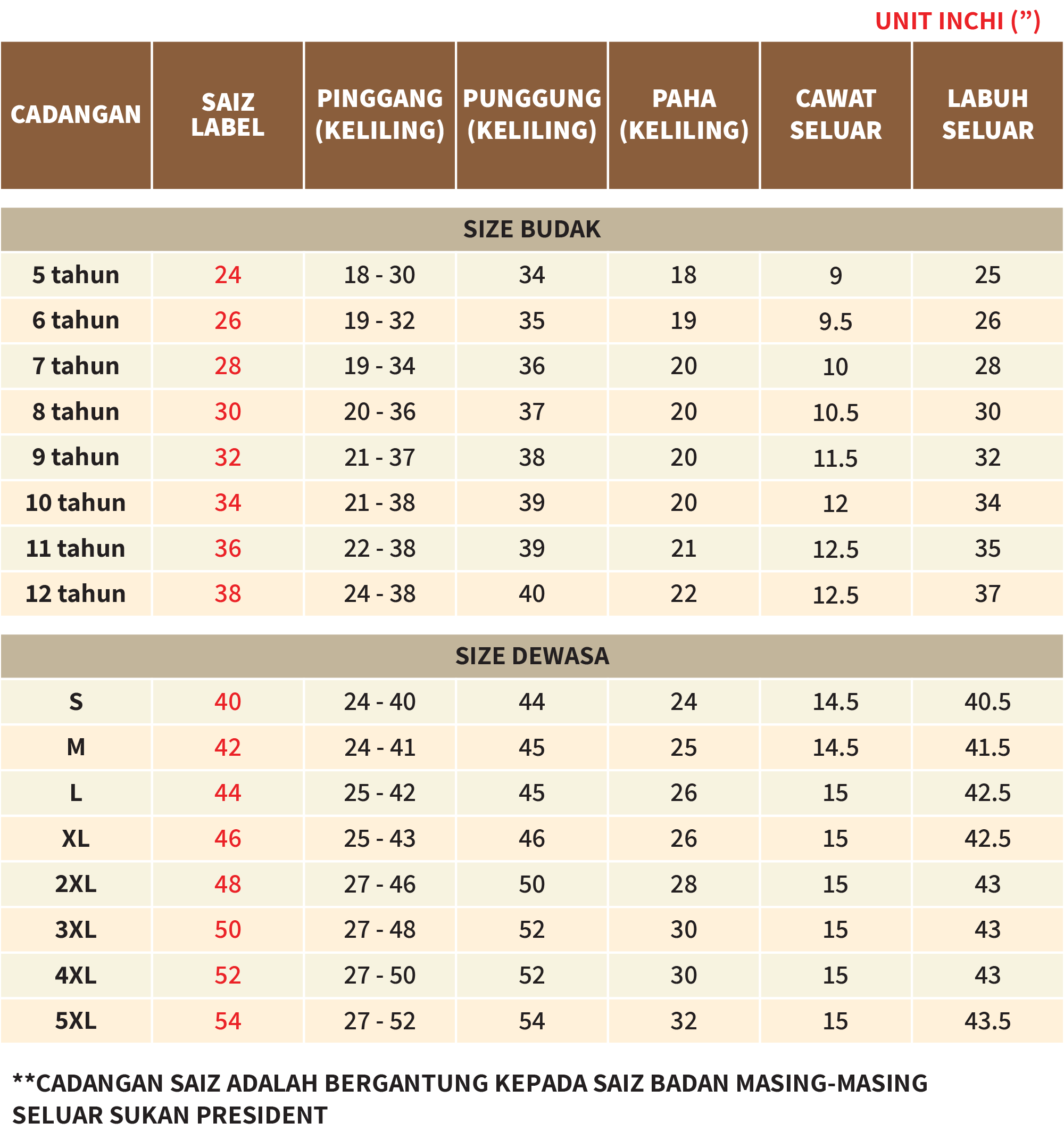 Seluar Sukan Cekak Bawah (Kain Tebal) Jenama President