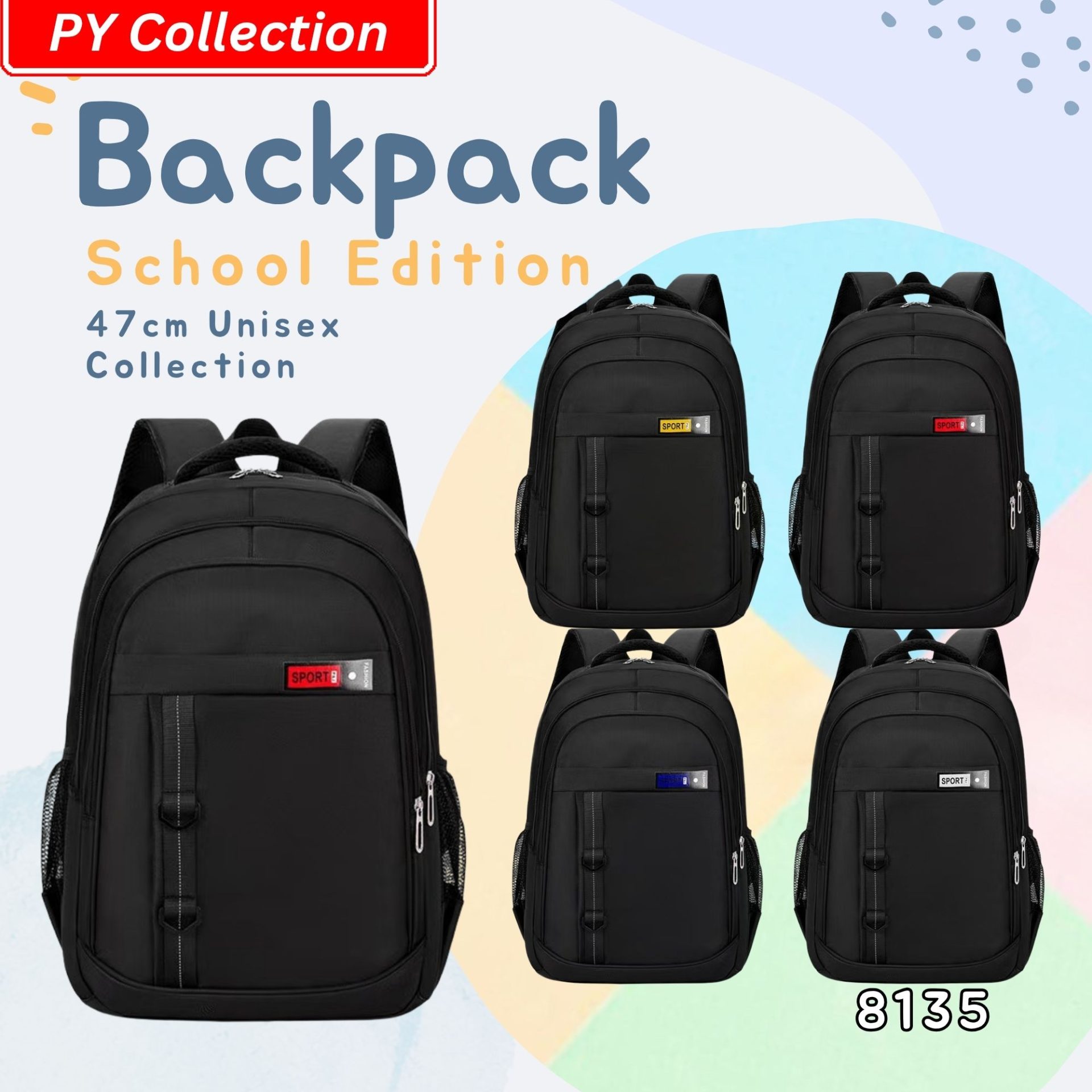 | Design | 8135#A BLACK BLUE, 8135#B BLACK RED, 8135#C BLACK WHITE, 8135#D BLACK YELLOW |