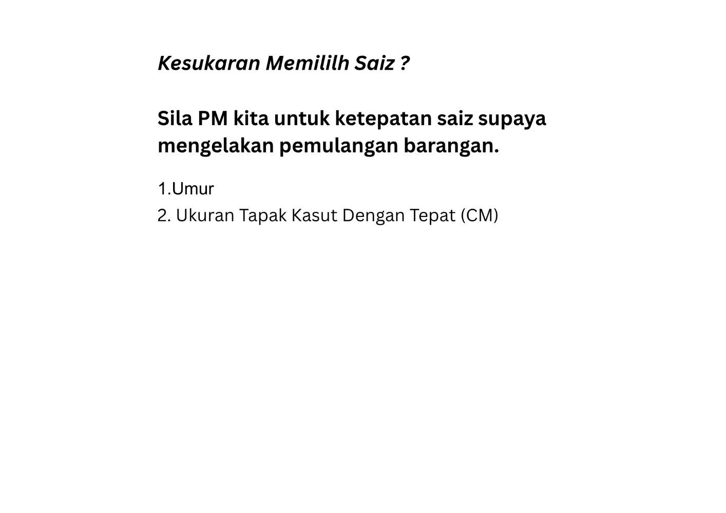 📢 Please inbox our customer service in order for us assist/guide you in the selection of sizes and the stock before you make any payment or submission. Thank you ✌🏻