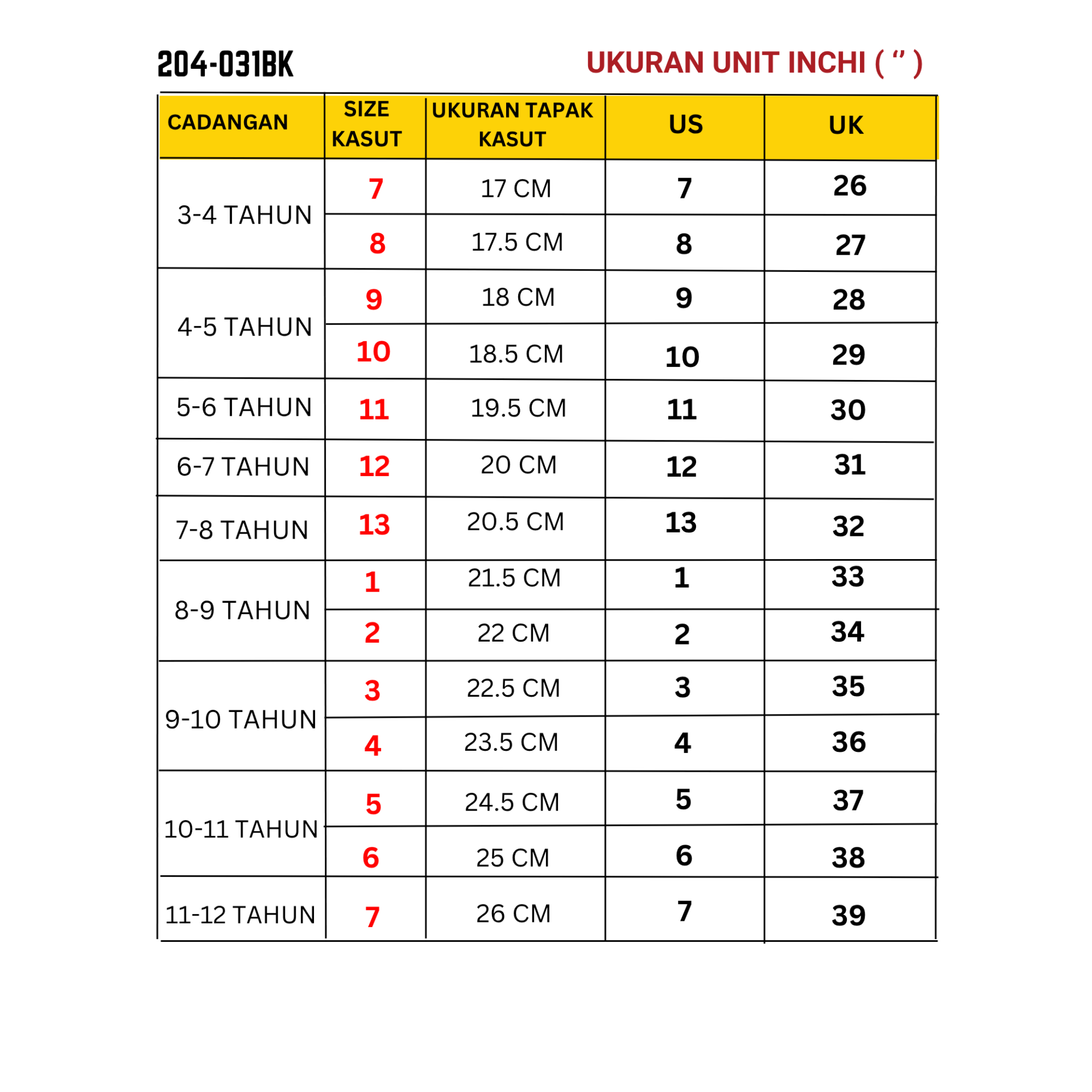 BRAND = 204-031BK / 306-031BK PALLAS JAZZ SCHOOL SHOE 1 VELCO STRAP HITAM
